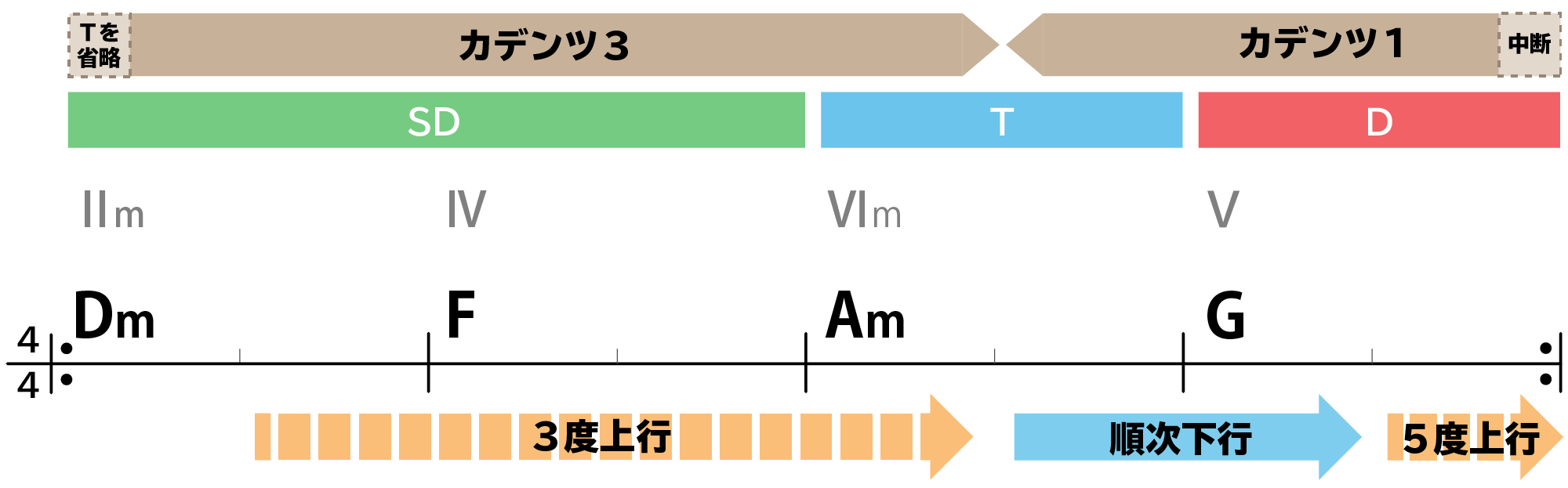 3度上行は、「Ⅰ→Ⅲm」のほか、特に「Ⅳ→Ⅵm・Ⅵm→Ⅰ」は良く使われます。