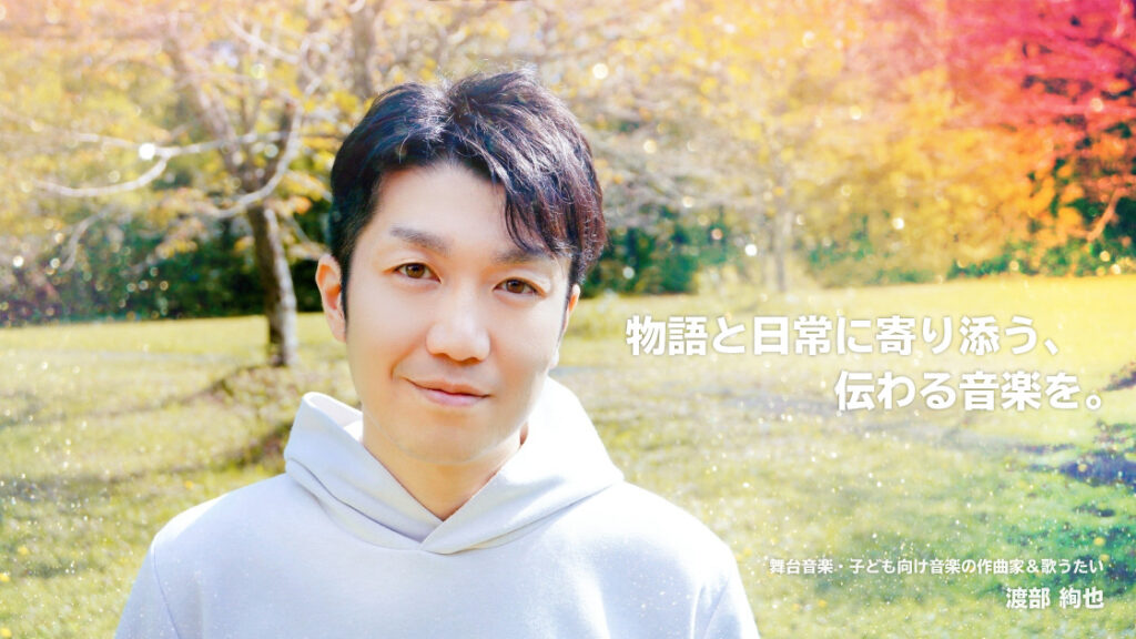 二児の父としての実感と、舞台作品で培ってきた構成力を活かし、子ども向けのオリジナルソングから、ミュージカル・公共イベントの音楽まで幅広く手がけています。