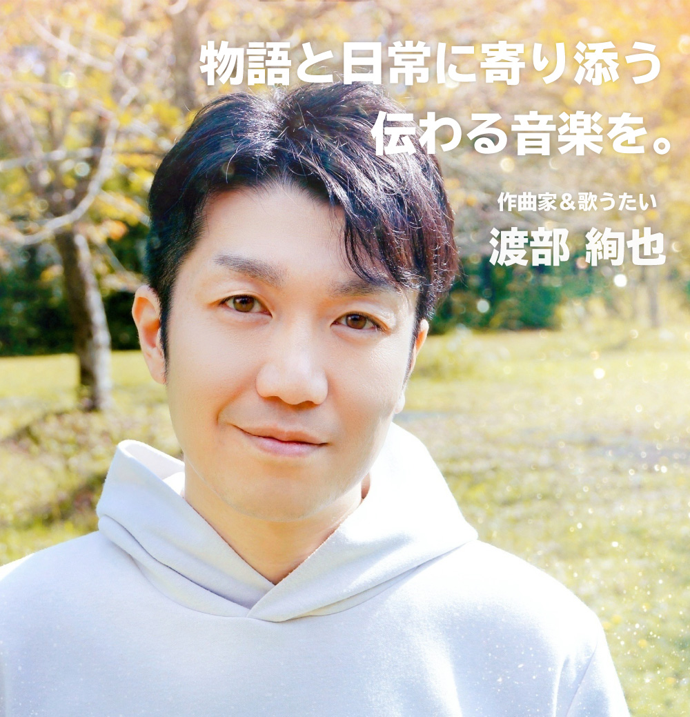 こんなお仕事をしています 🧒 子ども向け音楽・映像 ・YouTube総再生470万回 ・ライブ動員2万人 実績を見る 🎼 舞台・イベント音楽 ・ミュージカル&舞台:音楽監督 ・公共イベント音楽 実績を見る 🏢 企業・行政案件 ・自治体 ・企業PR など 実績を見る 渡部絢也の仕事 制作依頼(舞台・企業・公共団体など)Client Works >一覧 ミュージカル「新解釈 人魚姫伝説」音楽担当 2025.12.08 「ケロロワット体操」作編曲&歌唱担当 2025.09.03 碓井涼子「いつもここに」作編曲 2025.06.20 うなぎトラベルPR楽曲「うなえさん」作編曲 2025.06.02 妻とのユニット「ウタトエスタジオ」の活動Utatoe Works >一覧 ふるさと納税返礼品「とびだせ!ちんあなご!ゆうえんちはおおさわぎ」 2025.12.15 うたアニメ「おれたちバイキン ハッハッハッ!!」公開 2025.08.12 うたアニメ「はたらくトラクターのうた」公開 2024.11.11 新シリーズ「うみのえかきうた」配信! 2024.04.20 もっと見る リリース楽曲MY MUSIC >一覧 楽曲配信切り替えのお知らせ&リリース予定 2025.12.26 楽曲「トイレトイレトイレ!」配信開始 2025.10.06 singleデジタルリリース「Exsit」配信開始 2020.04.24 singleデジタルリリース「Keep It Down」配信開始 2020.03.13 もっと見る 渡部絢也舞台音楽・子ども向け音楽を手がける 作曲家&歌うたいProfile物語と日常に寄り添う、 伝わる音楽を。 秋田の山あいで暮らす二児の父。 舞台&子ども向け音楽の両分野で、 言葉や物語がきちんと届く音楽づくりを行っています。 ・YouTube470万再生 ・総再生13万時間超 舞台・企業・行政案件などの制作実績あり。 自分が歌い手だからこそ、 歌い手が心を込められる曲を書くのが得意です。プロフィールを読むXYouTube For Musicianミュージシャン向け記事まとめ 音楽理論・DTMプラグインレビューなどの情報はこちら あなたの音楽人生が、ゆたかに!
