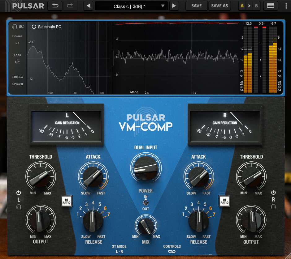 Pulsar VM-COMP は、実機が50万円以上する「Manley / Stereo Variable Mu Limiter Compressor」をエミュレートした真空管バスコンプレッサープラグインです。